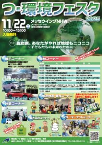 2025年11月22日(土)にメッセウイングNHWで開催される「つ・環境フェスタ」に今年も出展します。